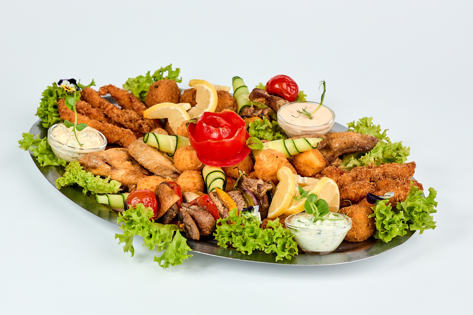 (mușchi vită, piept pui,ceafă porc, cașcaval, legume)